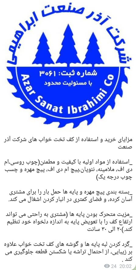 🏠 خانه | کف سرويس خواب ملامینه | کف تخت خواب کف تخت خواب کف تخت خواب ام دی اف رنگی , کف تخت خواب تمام چوب , کف سرويس خواب ملامینه اشتراک در شبکه های اجتماعی توضیحات نظرات تولید و توزیع انواع کف تخت خواب در سایزهای مختلف شما میتوانید ما را در کانال تلگرام به آدرس @kaftakhtkhab دنبال کنید و از آخرین محصولات و اخبار ما مطلع شوید. همچنین در روبیکا و ایتا نیز با همین نام کاربری می توانید ما را پیدا کـنید ارسال رایگان بـه سـراسـر کـشور کف تخت خواب دیدگاهتان را بنویسید لغو پاسخ امتیاز شما * 5 4 3 2 1 0 ذخیره نام، ایمیل و وبسایت من در مرورگر برای زمانی که دوباره دیدگاهی مینویسم. ارسال دیدگاه